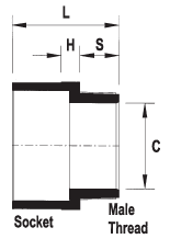 The valve socket is solvent cement jointed to a pipe spigot. The male-threaded end of the valve socket provides a connection for a PVC, brass or galvanised wrought iron threaded valve-type fitting.