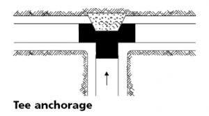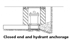 Concrete thrust blocks are usually required to transfer unbalanced forces in buried pipelines to the surrounding soil. See Installation Guidelines for construction of thrust blocks.