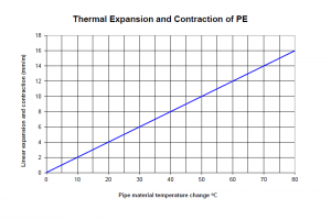Expansion and contraction of PE pipes occurs with changes in the pipe material service temperature.