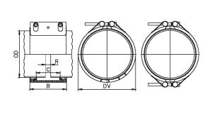 | Pipe OD (mm) | Clamping Range (mm) | Vinidex Code (LS) - EPDM | Vinidex Code (LS) - NBR | PS Bar | Vinidex Code (LU) - EPDM | Vinidex Code (LU) - NBR | PS Bar | Torque (Nm) LS | Torque (Nm) LU |