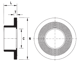 The 50, 80, 100 and 150 sizes are “stub” or short face flanges as opposed to the large full face flanges of other pipe sizes. These products include a PVC backing ring.