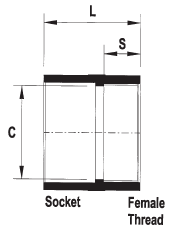 The faucet socket is solvent cement jointed to a pipe spigot. The female-threaded end of the faucet socket provides a connection for a faucet tap fitting or a spray nozzle.