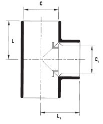 Tees provide a branch at 90° from a main line. Available in equal or reducing branches. See also tapping saddles.